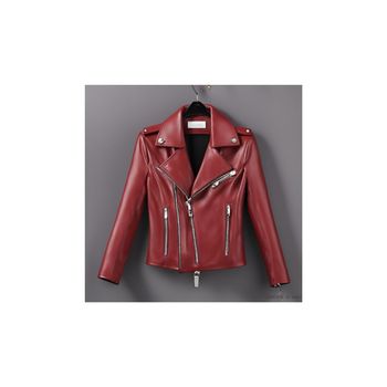 Hakiki deri kırmızı kadın ceket Pakistan kızlar imalatı fabrika fiyat toptan ceketler Biker motosiklet ön Zip kırpılmış